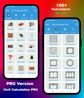 The PRO version of Civil Calculation App doesn't have any ads, and it has more feature than the free version.