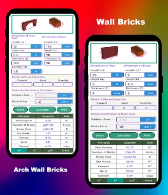 Calculate how much bricks and blocks are needed for wall, circle wall, arch wall, room and build home.