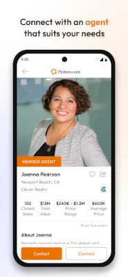 With the Homes.com app you’ll have access to homes for sale and rent, easy access to the listing agent’s contact information, the most detailed information about neighborhoods and schools, a robust directory to find qualified buyer agents specializing in your search, mortgage calculators, home value estimates from 4 sources, historical photos, and the most advanced collaboration tools around to easily co-shop with friends, family and the agent you choose to work with.