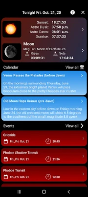 + Sky Tonight - jump to the new Tonight section to see what’s visible in your sky tonight. Expanded information has been designed to help plan your night and includes Moon & Sun info, calendar curations, events and the best positioned deep sky and solar system objects.